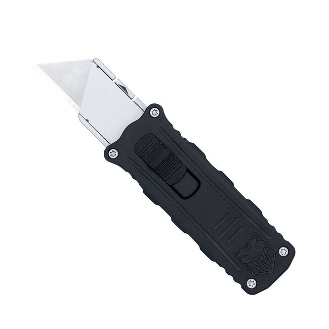The CobraTec CTOTFUKSBBLK Utility OTF Knife brings innovation and versatility to your everyday tasks. Featuring a 3.38" replaceable utility blade and a rugged black anodized aluminum handle, this newly engineered side-button OTF knife offers fast one-handed deployment and retraction for ultimate convenience. Its front-exit mechanism delivers precision and control, making it ideal for on-the-go professionals, DIYers, and tactical users alike. Built with durability and ease of use in mind, this knife combines the practicality of a utility blade with the reliability of CobraTec’s OTF design.