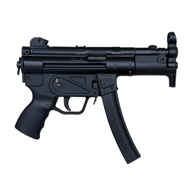 The AP5-M is the most compact version in the AP5 lineup, featuring a 4.5–4.6 inch cold hammer-forged barrel, stamped steel receiver, and classic drum rear sight with fixed front sight. Its compact size and lightweight design make it ideal for tactical use, range shooting, or as a collector’s MP5-pattern firearm.